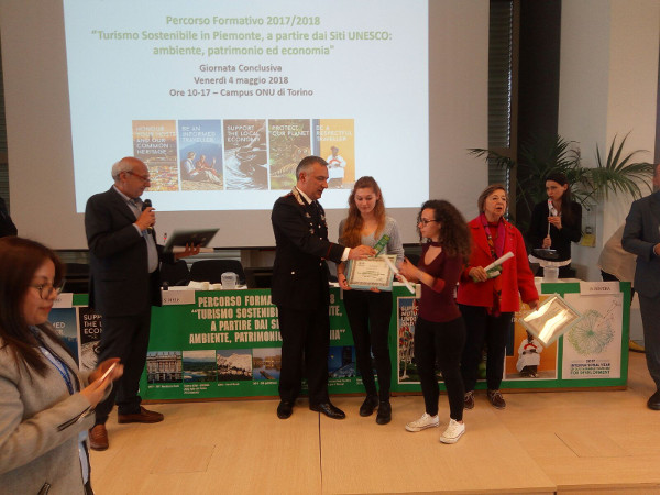 I ragazzi della 4^C Turismo di Canelli hanno partecipato alla premiazione del progetto UNESCO, coordinati dai prof. Bruno Armano e Alessandra Gallo.
