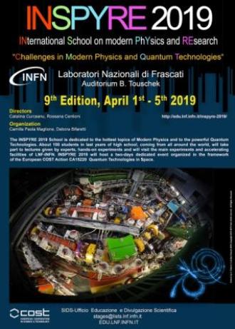 Dal 1/4/2019 al 5/4/2019 presso i Laboratori Nazionali di Frascati dell’Istituto Nazionale di Fisica Nucleare si è tenuto il corso “INSPYRE” (INternational School of modern PhYsics and REsearch) in cui è stato rappresentato anche il Liceo Scientifico di Nizza Monferrato dall'alunno Valerio Pagliarino della classe 5C Scienze Applicate.